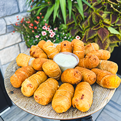 6 Cheese Sticks with House Made dipping Sauce on the Side.